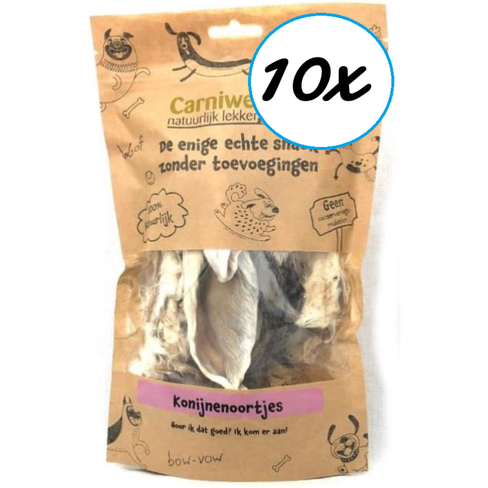 Aanbieding of Voordeelpakket met Carniwell Konijnenoortjes met Vacht 10 x – Natuurlijk Kauwplezier voor je Hond