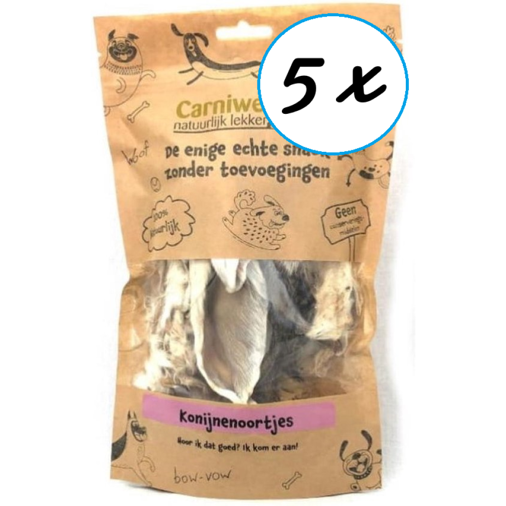 Aanbieding of Voordeelpakket met Carniwell Konijnenoortjes met Vacht 5x – Natuurlijk Kauwplezier voor je Hond