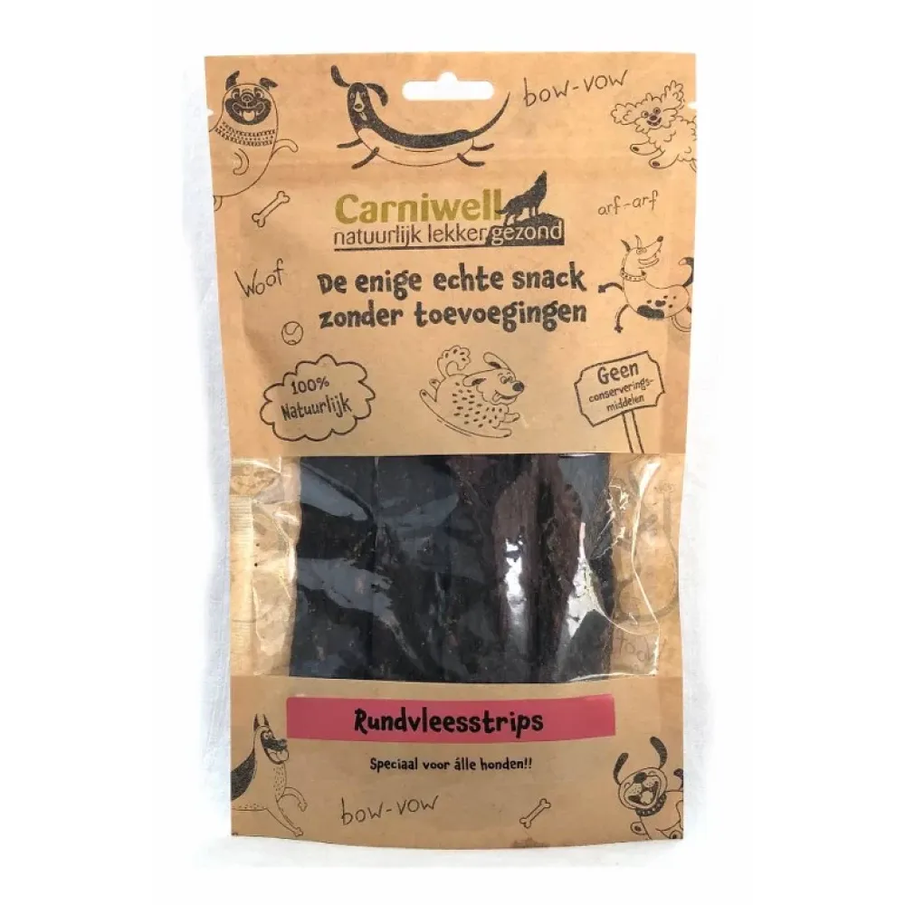 Carniwell zijn lokale vis- en vleesdelicatessen voor je hond. Ruim 80% komt direct uit Nederland en er wordt niets van buiten Europa geïmporteerd. Dit laatste heeft als grote voordeel dat de Carniwell-snacks niet radio actief bestraald worden, dit in tegenstelling met andere soortgelijke producten die in dierenspeciaalzaken en andere winkels te vinden zijn en veelal van buiten Europa afkomstig zijn.