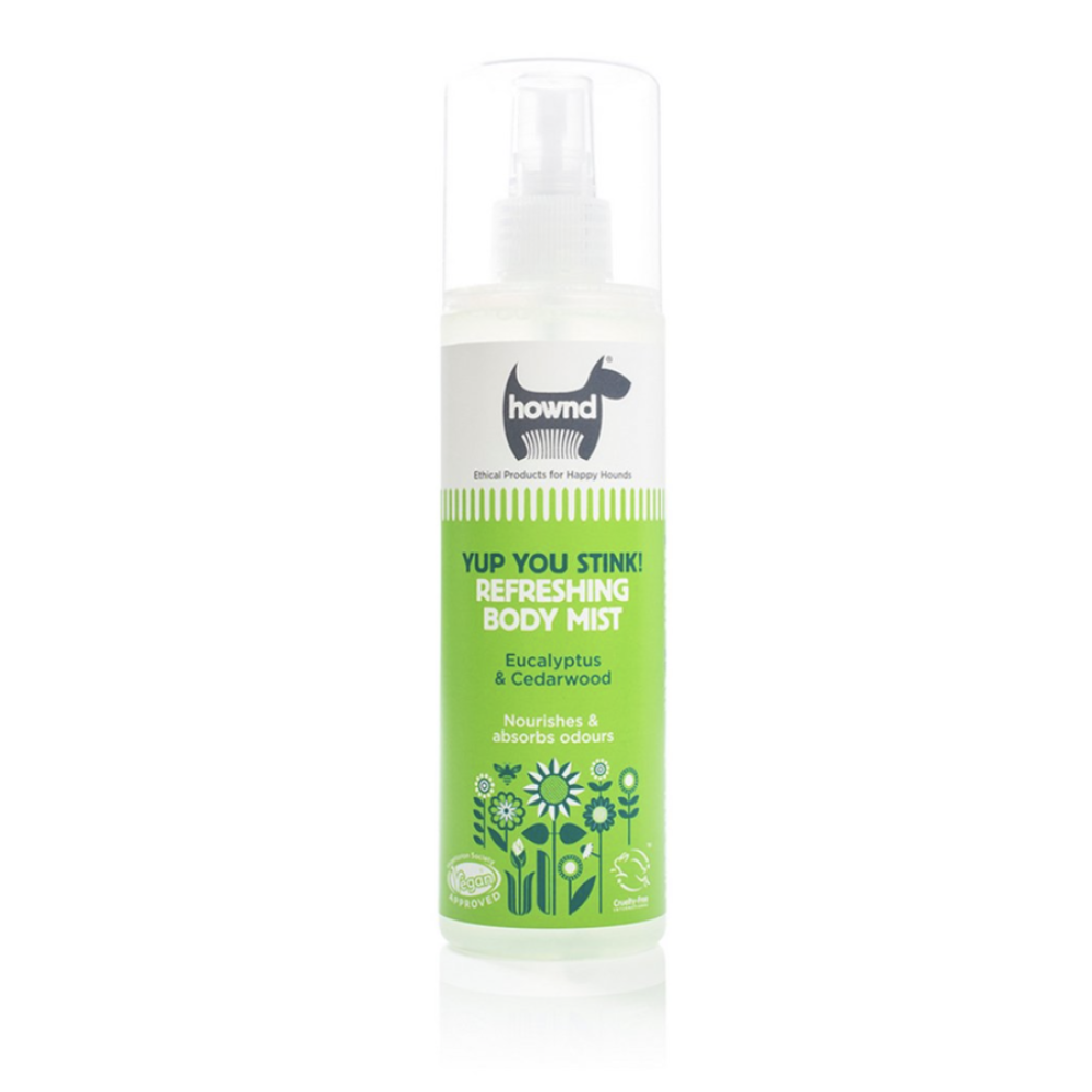 Geef je hond een verfrissende boost met de Hownd Refreshing Body Mist. Deze milde, pH-gebalanceerde spray combineert de opwekkende geur van eucalyptus met de warme, houtachtige tonen van cederhout voor een heerlijk schone en energieke geurbeleving.