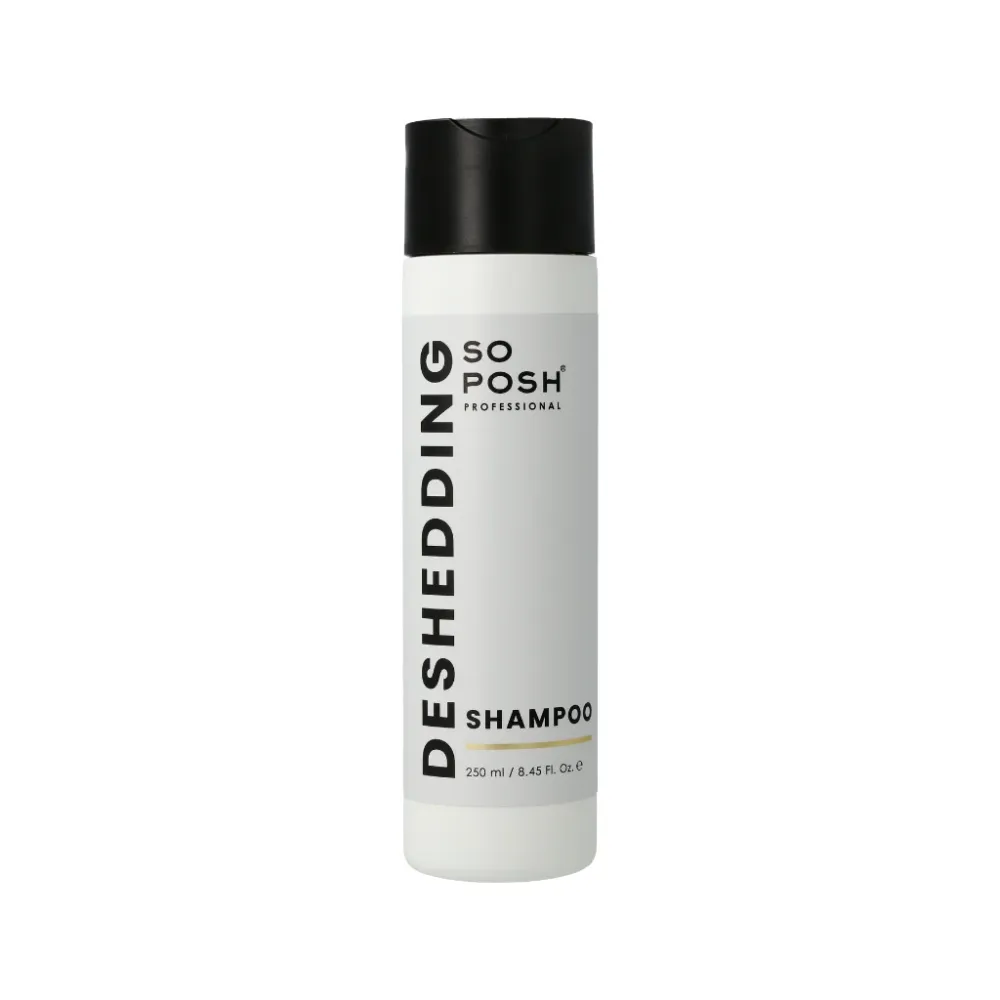 De So Posh Deshedding Shampoo is speciaal ontwikkeld om losse haren effectief te verwijderen en de natuurlijke rui te verminderen. Dankzij de rijke formule met verzorgende oliën en proteïnen wordt de vacht grondig gereinigd zonder de huid uit te drogen. Deze shampoo voedt de haarwortels, versterkt de vachtstructuur en helpt de rui onder controle te houden.