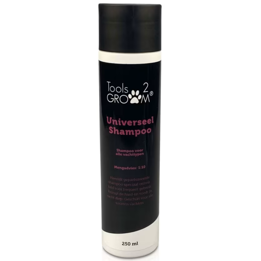 De Tools-2-Groom Universeel Shampoo is de perfecte keuze voor de dagelijkse verzorging van je hond of kat. Deze zachte, effectieve shampoo reinigt de vacht grondig en zorgt voor een frisse uitstraling zonder de huid te irriteren. Geschikt voor vrijwel alle vachttypes en ideaal voor regelmatig gebruik.